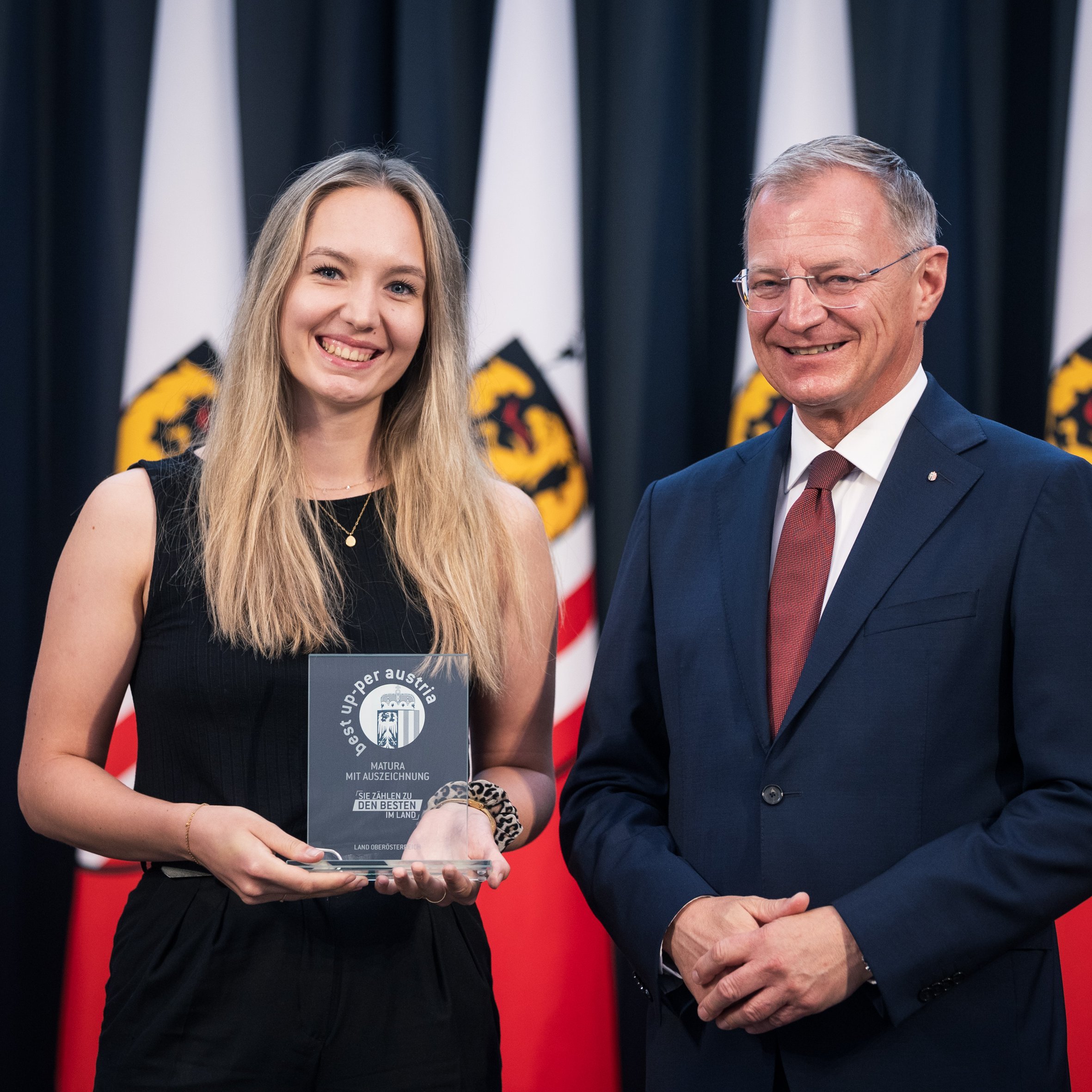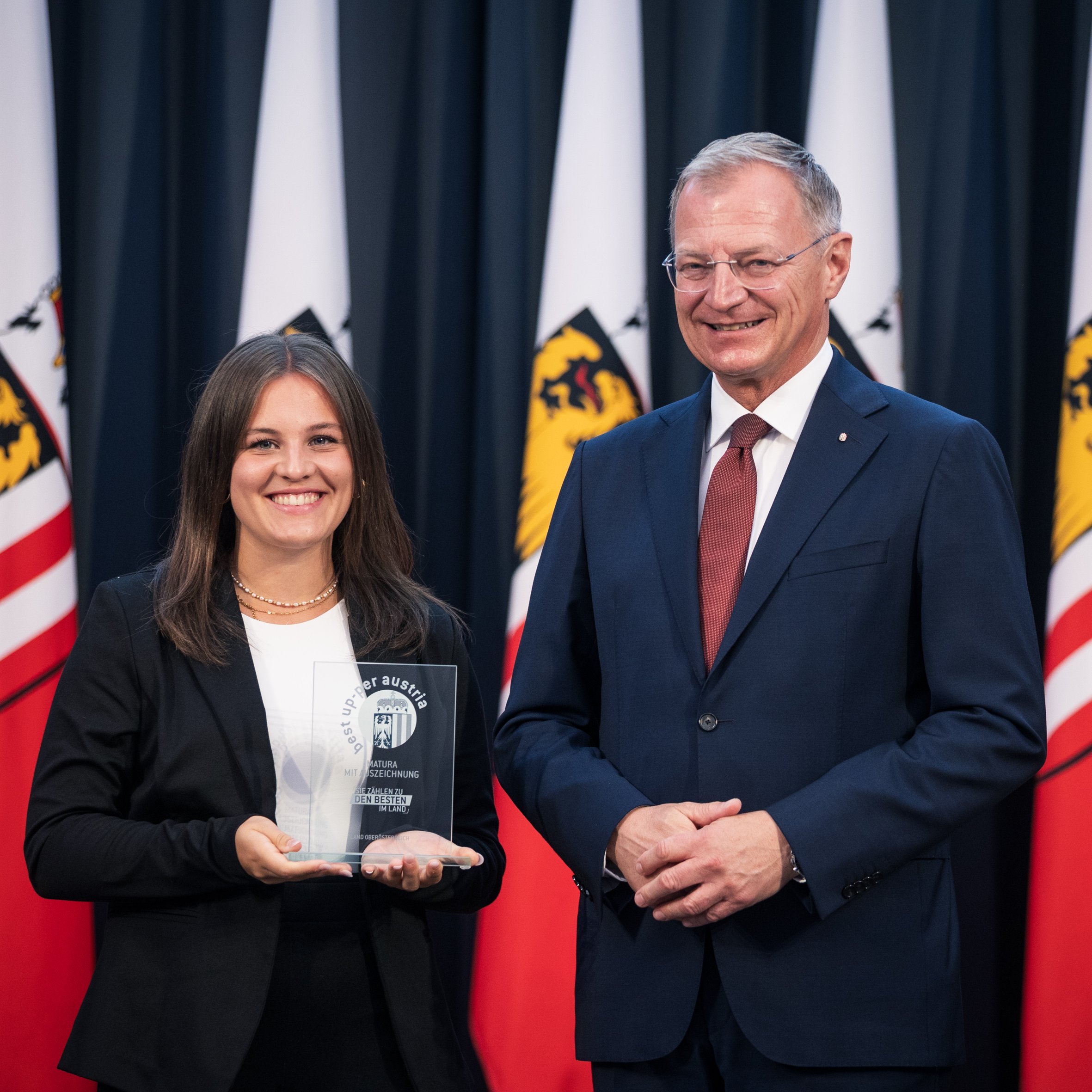 Am Mittwoch, dem 20. August, fand um 10 Uhr im Steinernen Saal des Landhauses in Linz ein feierlicher Festakt zur Ehrung herausragender schulischer Leistungen statt. Landeshauptmann Mag. Dr. Thomas Stelzer würdigte im Rahmen der Veranstaltung die Absolventinnen und Absolventen mit ausgezeichnetem Erfolg bei der Reife- und Diplomprüfung.